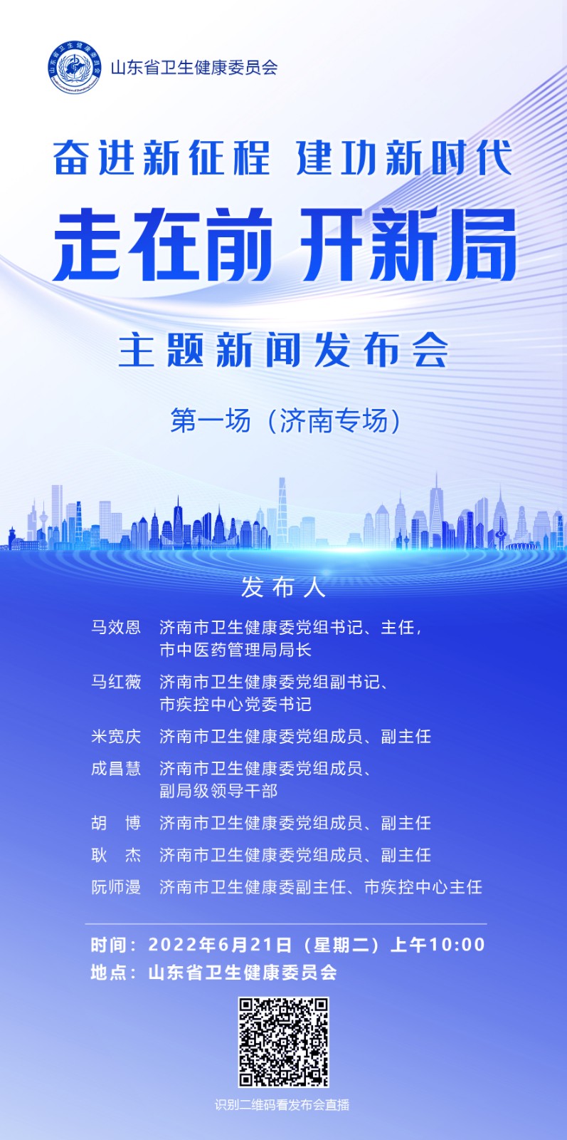 6月21日上午10点,该系列新闻发布会的第一场“济南专场”将举办,健康山东新闻客户端将全程进行直播,敬请关注!
