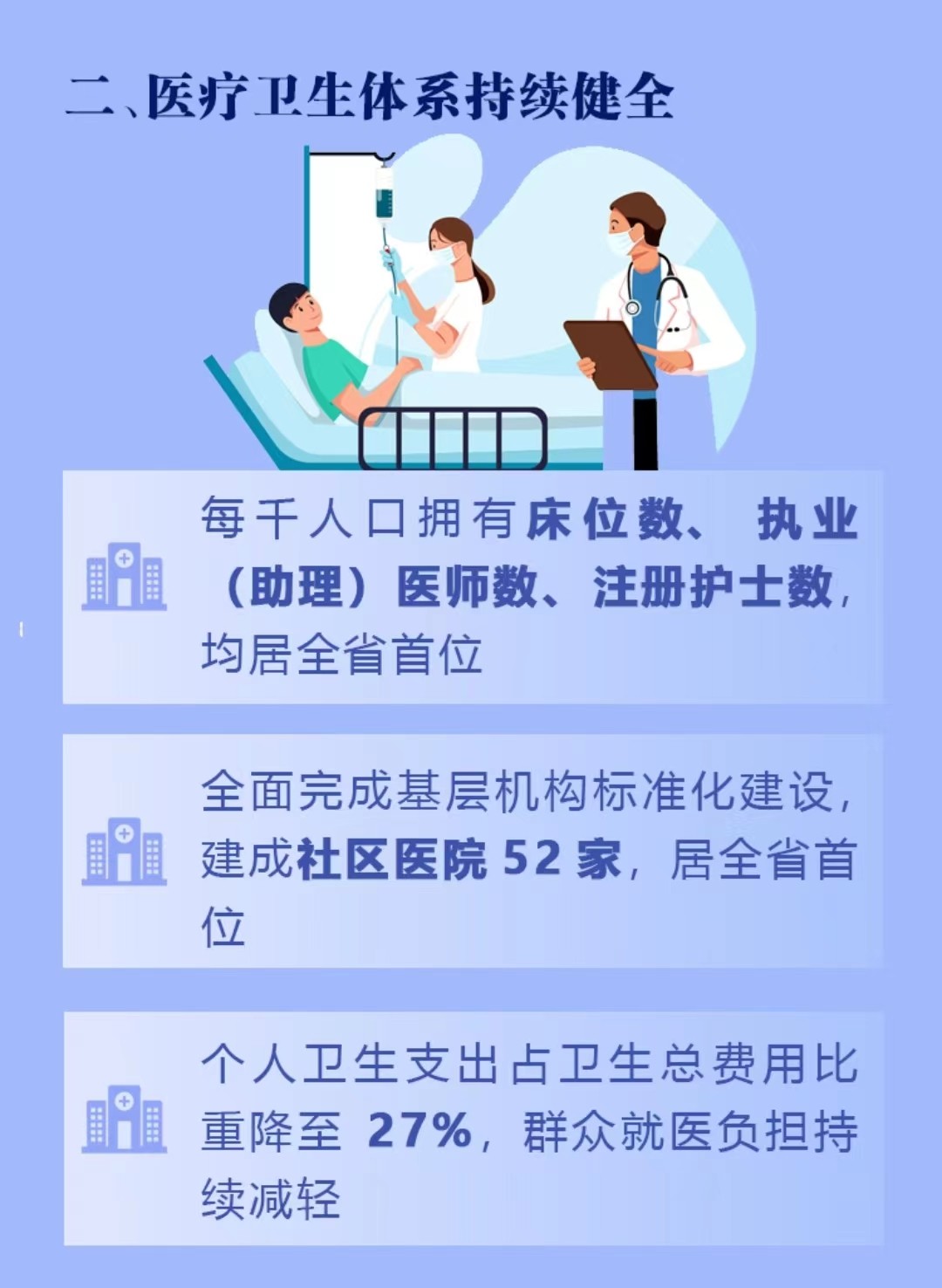 二、医疗卫生体系持续健全。