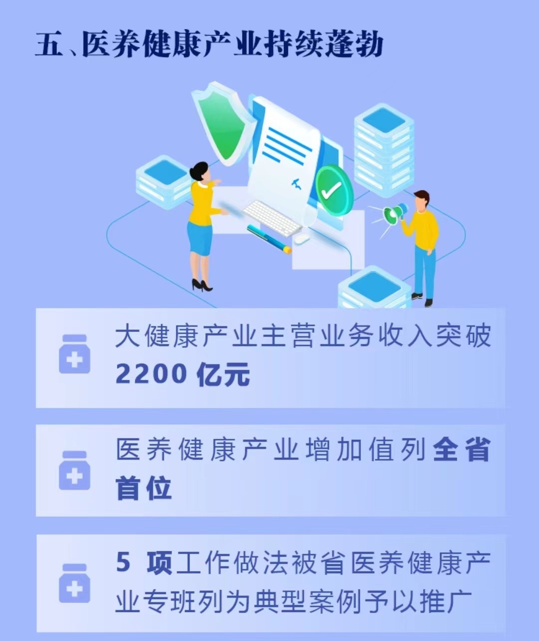五是发展更加多元的医疗康养产业。